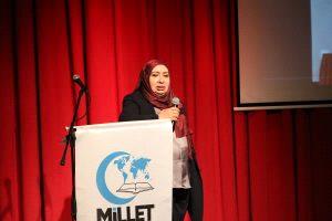 Merhum Bilge Liderin ailesi adına konuşan Aykut Edibali’nin hem eşi hem dava arkadaşı olma şerefine mazhar olmuş olan Filiz Edibali Hanımefendi konuşmasına büyük bir dava adamına, bir âlime, bir mütefekkir ve bir siyaset bilgesine eş olmasını nasip ettiği için Allah’a şükrederek başladı. Onun zarafeti ve beyefendiliğine vurgu yapan Edibali, nasıl bir insanı kaybetmiş olduğunun altını çizdi. Ardından onun davasının ne olduğunu, nasıl anlaşılması gerektiğini açık ve sarih olarak anlattı. Özellikle Muhteşem Türkiye projesindeki altı umdenin hem milli hem evrensel olduğuna vurgu yaparak her maddeyi dinleyenlere yeniden yorumladı .