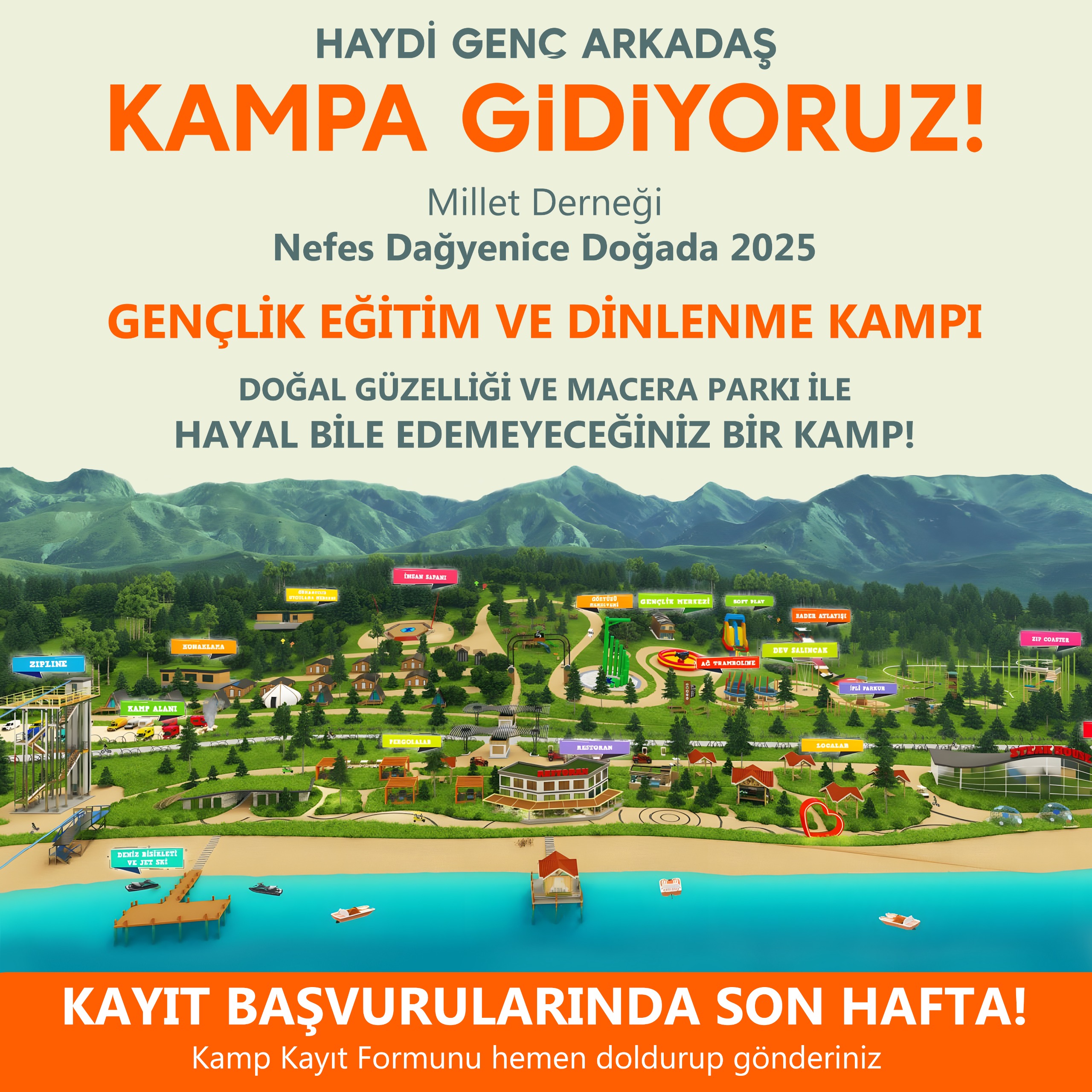 Aynı yerde düzenlenecek olan ‘Kız Gençlik Eğitim ve Dinlenme Kampı’ ise 21 Temmuz’da başlayacak ve 27 Temmuz’da sona erecek.